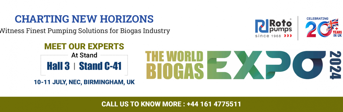 Manchester, UK (June 1, 2024): Roto Pumps UK is set to exhibit at the upcoming UK AD & Biogas Expo – #Stand C-41, Hall No. 3, July 10th-11th, 2024, at the Birmingham NEC.